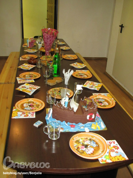 Было очень весело и интересно. Празднование началось в 15.00, а ушли мы от туда часов в 19)))) Для деток была организована интерактивная экскурссия - поиск клада. В процессе поиска клада проводились различные конкурсы и детки выполняли задания: отгадывали слова, бегали вокруг стульев под музыку,играли в игры... Степка и его еще один братик, которому 3 года на экскурссию не пошли, а решили сразу же поднялись в комнату где был накрыт праздничный стол и наблюдали за всеми через окошко)))))))