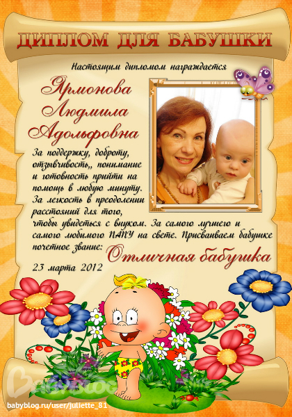Какой клас!!! Какая вы молодец!! поразила идея дарить дипломы крестной, бабушкам!! супер идея! предтавляю, как им радостно и тепло было получить такой диплом... Тоже возьму идею на вообружение! спасибо!