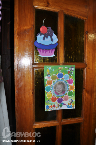 И конечно же цифра 2 из розочек бумажных. Висела на стенке. Надо было толще его сделать, на след. год лучше сделаю. Времени было мало, всего месяц.