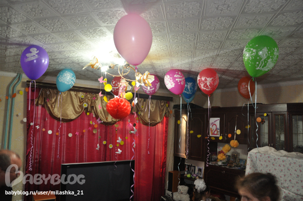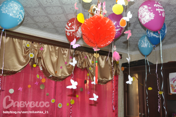Оформление праздникаВсе фото под катом. Прошу. Писать много не буду, только фото. Думаю многие знают как все это делается.Звездочки висели на стене, сама делала первый раз такое. Очень просто и легко. И смотрится очень красиво.