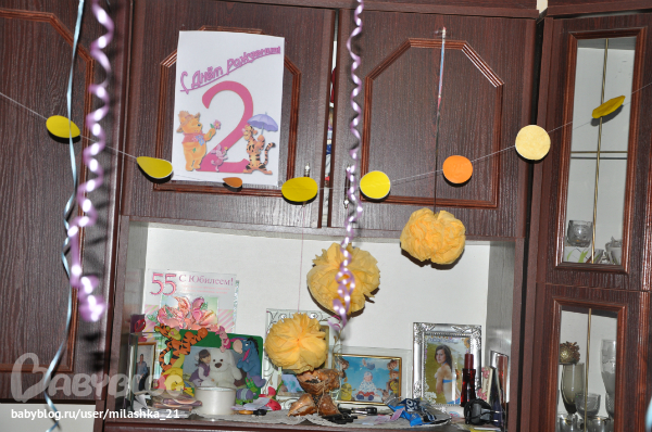 Разные плакатики, бумажные пумпоны маленькие делала.