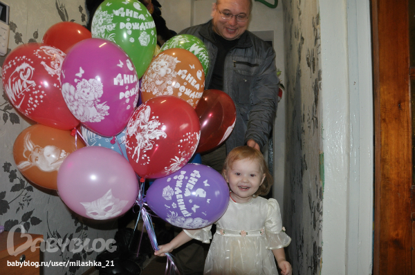 День рождения ДетскийВсю ночь украшала комнату, что то доделывала. Сидела до 2 ночи. Моей сладкой конечно больше приглянулись бабочки.С утра ждал ее другой сюрприз, охапка шариков от папы с дядей (они вместе ездили). По всей квартире бегала с этими шарами и показывала всем. День рождение отмечали только в семейном кругу, не смотря на то что я так усердно к нему готовилась. Осторожно много фото.