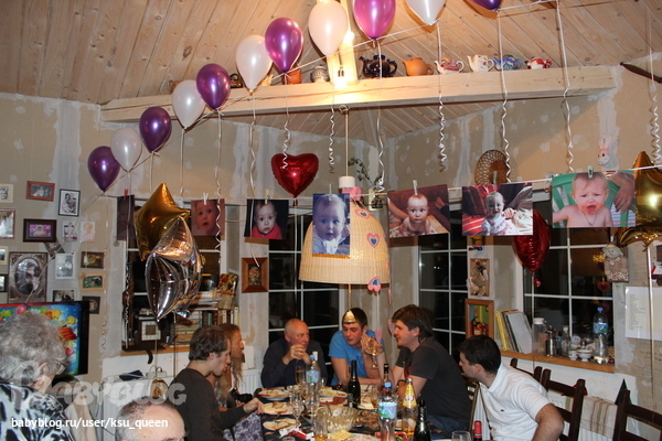 развесили фотки Алисенки по месяцам,друзья-оформители все,ну просто все надули и украсили гелием,что было очень приятно))