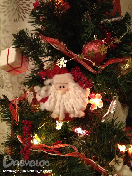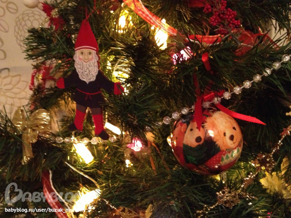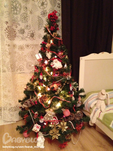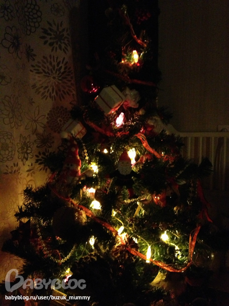 Теперь будем засыпать глядя на огоньки на елочке. Игрушки практически все небьющиеся, были закуплены еще в том году... У нас традиция, что нужно обязательно каждый год новую игрушку повесить на елку (ну как минимум), так что в этом году игрушки решили сделать сами, посмотрим, что у нас выйдет.