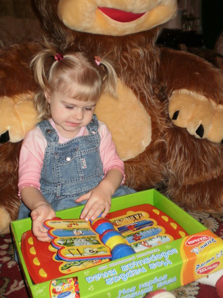 Миланке надарили кучу подарков ( магнитную доску для рисования, говорящую книгу, рюкзак с дракончиком , сумочку-собачку, различные игрушки, комплектик ( шапка , шарф, рукавички ), туфельки, кое-что из одежды, сладости всякие разные, фруктики и , конечно же ДЕНЮШКИ ))) ... )