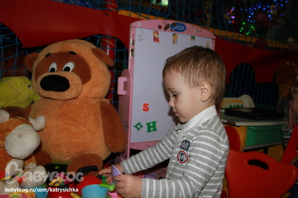 Было удобно, что наш столик находился сразу напротив игровой. Когда Диме надоедало там игратся, он сразу же выбегал к нам, а не бегал по всему залу в поисках родителей, как это было с другими детками. Так что теперь последующие Дни Рождения будем отмечать именно в кафе, где есть игровые для деток. Очень удобно. И детям хорошо и весело, и родителям комфортно.