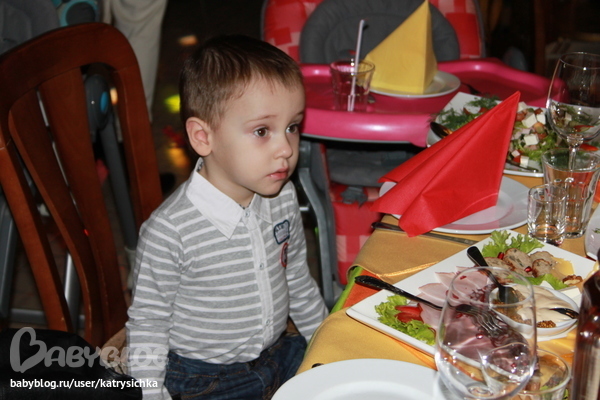 Когда заказывали столики, нам предлагали выбрать празничную получасовую программу с каким-нибудь сказочным персонажем. Но мы отказались, решив что пока ещё рано, может быть закажем в следующем году, когда наш паренёк подрастёт)))))))))