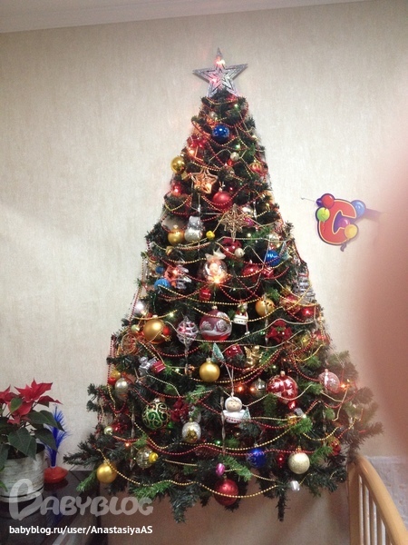 Новый ГодВторой год вешаем елку на стену и места мало занимает и ребенок игрушки не снимает...