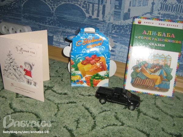 Игра "Дед Мороз"Сегодня днем сбегала на почту и получила наш подарочек. Спасибо большое снегурочки. Правда открытка не подписана поэтому даже незнаем кто это.Но большое спасибо ребенок очень рад особенно машинке. Вот фото