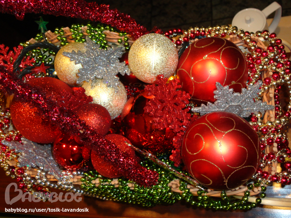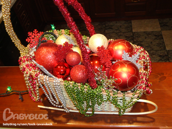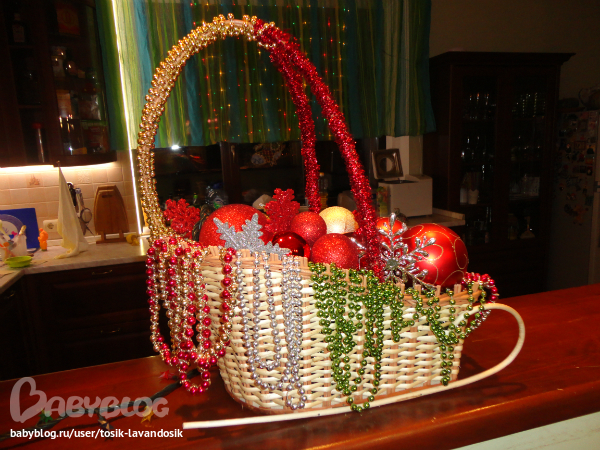 Новый Год..Еще одна простая и мегабюджетная идея. Мне иногда дарят цветы и иногда в корзинах. В конце концов, в доме их скопилось вагон и маленькая тележка, вернее санки. Вот их я и приспособила под элемент декора. Внутри гирлянда, лишняя оказалась , сверху шарики, снежинки и елочными бусы, которые тоже оказались неудел. Немного ближе к нг, воткну туда еловые ветки, будет вообще загляденье. Буду счастлива, если кто использует мой рецепт новогоднего настроения.))))