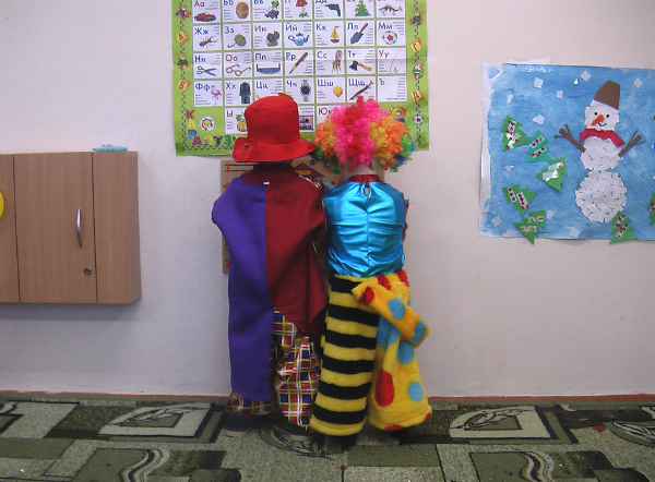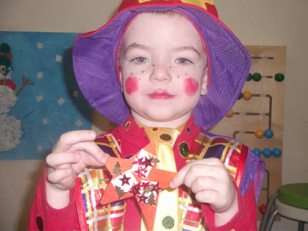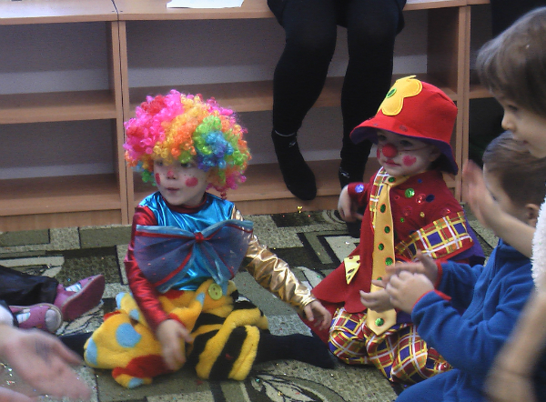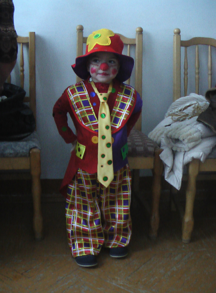 Ну а про утренник решила что утренник не только для детей но и для нас мам и пап и создала себе тоже образ клоуна.Всем очень понравилось.Особенно оценили преподователи. Приятно было когда другие родители просили сфотографирофать их детей с моими .Жаль кстати что родители не приобщаются к празднику ,у нас это как то не принято.А было бы классно если бы большая часть родителей пришли в образе..