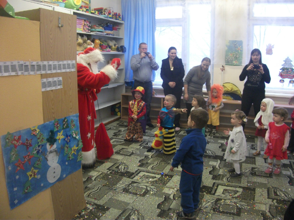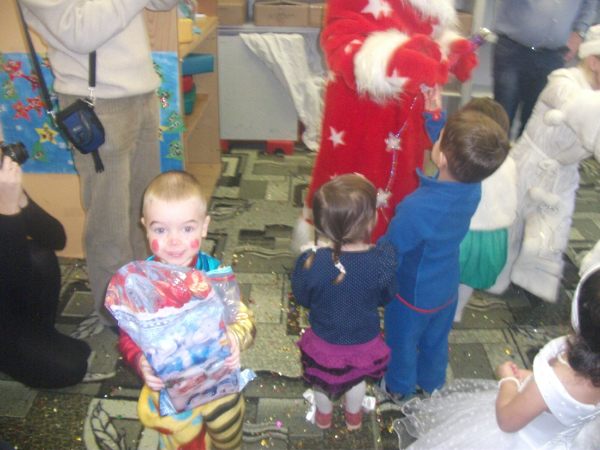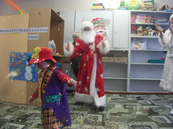 Мальчишки с нетерпением ждали деда мороза .Учавствовали во всех играх.Вообщем мы в очередной раз остались довольны утренником.
