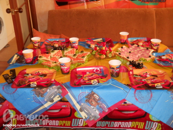 День рождения ДетскийПраздновали 3-й День Рождения сына.Мне кажется в 3 годика ребёнок уже понимает что это его день рождения и надо праздновать так , чтобы ему запомнилась. Готовилась очень долго,заказала из США принадлежности для ДР в 3D (так как Майкл очень любит мультик Молнию Маккуин и всё что связана с ним, то выбрала из этой серии ) и костюм , придумывала всякие детские блюда, смотрела и в и-нете. С мужем украсили комнату на день раньше. Вот что получилась и какое меню))