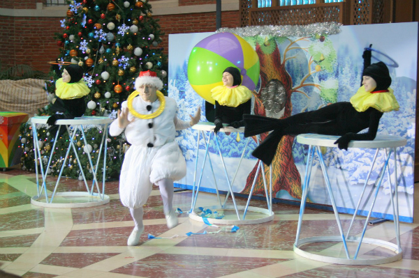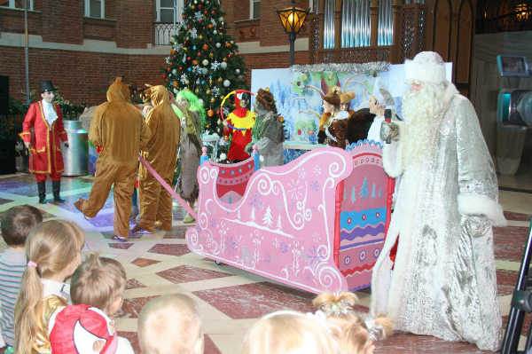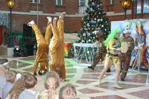 Вообщем на след. день нам предстоял поход на ёлку в РЦ "Москвич".Туда нам достались билеты с моей работы...Ну как бы местечковая ёлка в пару остановок от нас..Честно говоря,была приятно удивлена-очень красивая ёлка,шикарная просто!Так красочно и ярко всё,весело и просто замечательное представление!