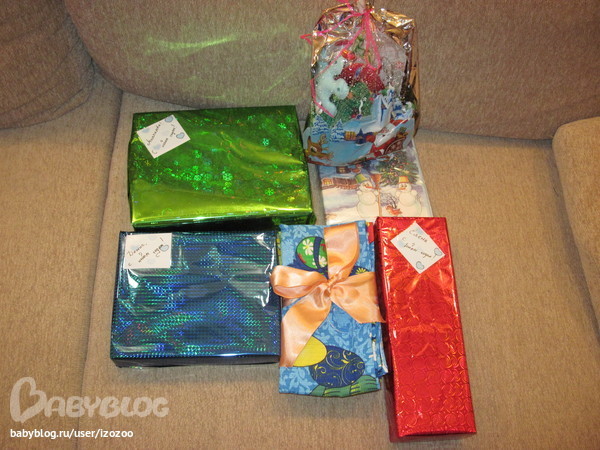 Как и хотели, вскрыли посылку в новогоднюю ночь, а там... все так красиво и со вкусом упаковано!!! Каждому члену семьи по подарку + общий. КРАСОТА!!! Чудесные и радосные эмоции!!!