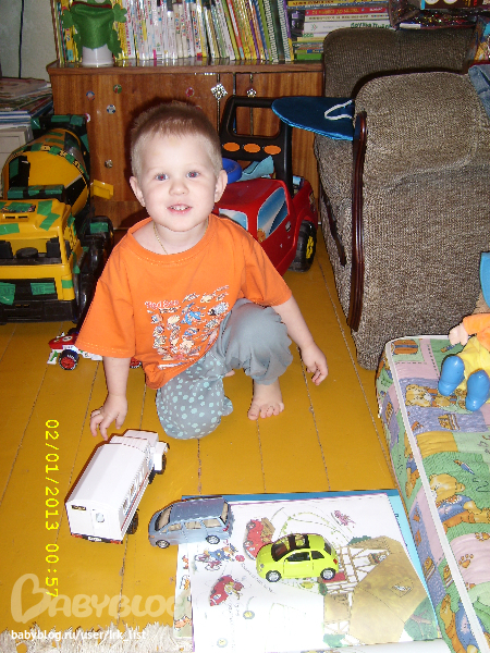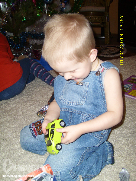 А еще Гере досталась машинка, обрадовался! а потом сказал: "Тоже пальчики пол задевают"