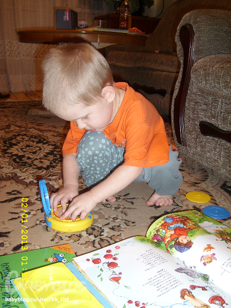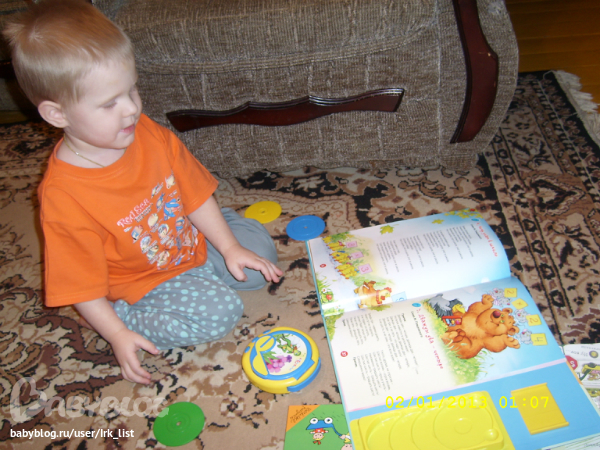 "Мама, помоги включить!" 40 минут изнурительных тренировок и сам научился искать песни которые выбрал в книге! Полюбились: "2*2=2", "Песенка о ремонте" и "Чему учат в школе".