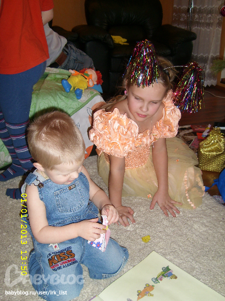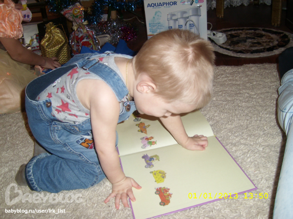И наконец добрались до Вали и деды. Света (сестра мужа) нас уже не дождалась, остались от нее только подарки. Про фотоаппарат я уже забыла, мама Геру на свой поснимала. Подарки под елочкой отъискали, поиграли-почитали чуть-чуть, а уж дома основательно за подарочки взялись. В гостях совсем некогда было играть, все и всё отвлекали. А вот дома самое то!