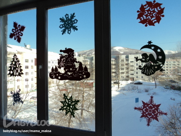 Спасибо, я кстати, большинство идей с рутрекера взяла, снежинки не стала изобретать, а использовала книгу Make Your Own Paper Snowflakes, вот ссылка: http://rutracker.org/forum/viewtopic.php?t=3834268. Купила цветную бумагу для принтера и попросила мужа распечатать снежинки, а вечером всей командой вырезали. Фигурки на окна - то же есть много-много книжек, просто увеличила и перевела на картон большого формата, купила два листа: красный и зеленый, хватило для витражей на три комнаты. Вот с домиком пряничным пришлось повозиться :) Правда, мы его потом так и не съели, отнесли птицам в парк в качестве домика :)