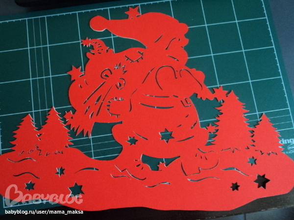 красота! а из бумаги как вырезали? снежинки очень красивые))) Я так не умею, но хотя бы представляю как, а как елку и Деда Мороза?!
