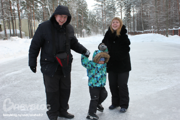 Насмеялись мы конечно очень сильно, но под конец нашего катания, Славена даже уже ножки стал держать пряменько и держа его за ручки, мы отлично его катали по катку.....