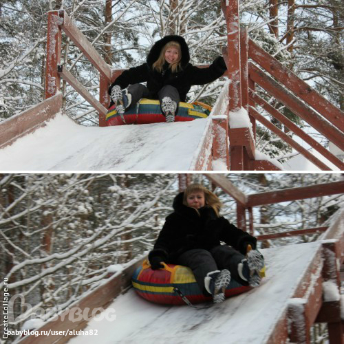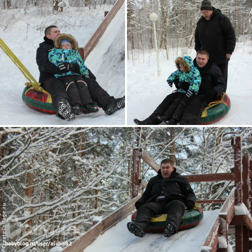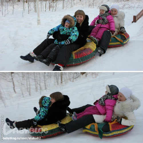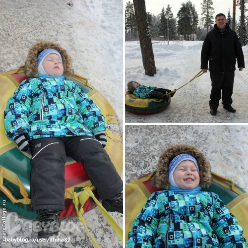 А дальше отправились мы на ватрушках кататься. Я трусиха страшная (видимо поэтому у нас и Славена тао аккуратненький, 20 раз проверит и спросит не опасно ли), поэтому со Славой на плюшке катался наш папочка.