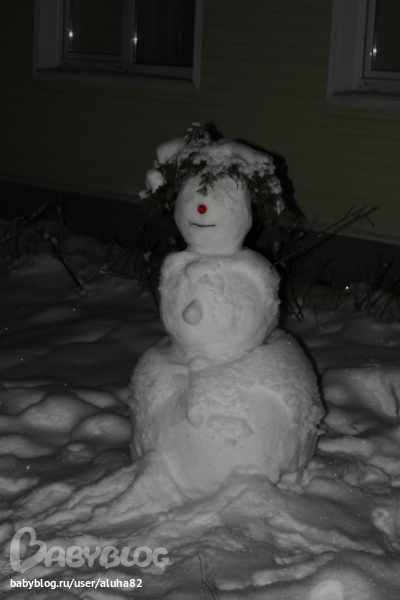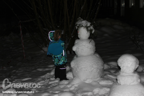 Пока шли к мангалу нашли таких вот забавных снеговичков. Славена долго и упорно пытался отковырять носик у снеговика, который был из пробки от кока-колы. И говорил так серьезно:"Нос должен быть из морковки!" Насилу увела его от снеговика, а то и такого носика не было бы.