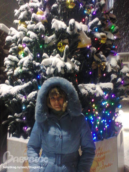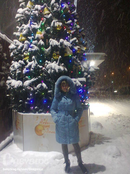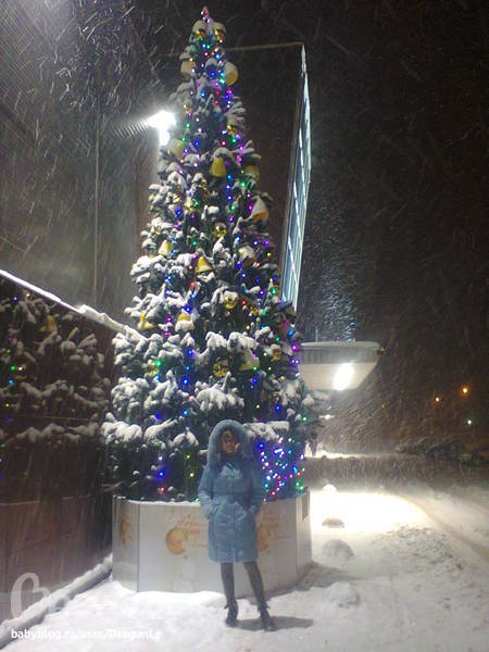 Вчера ходили в гипермаркет , и на выходе , заметили , стоящую скромненько в сторонке ) , Ёлочку - Красавицу !!! Такая красаваааая !!! ))) А снег ... просто прелесть , сыпал и сыпал огромными хлопьями ...