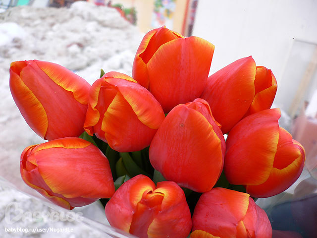 Вот только пофоткаться с ними , почти так и не успели ... ((( Выняла я их с упаковки , поставила в воду , сняла резиночки ( которые не давали им распускаться ) ... Ииии ... за минут 10 они распустились , через пару часов начали увядать ... Короче , перемёрзли , бедняжки ! ((( С такой то 8-Мартовской погодкой ... (((