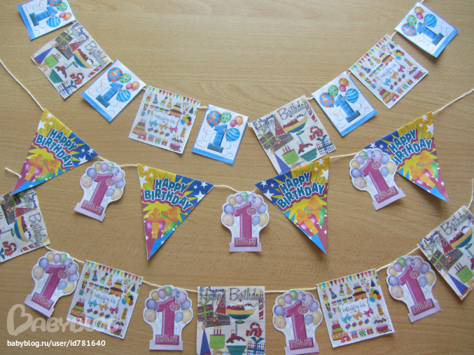 Когда мы отмечали год меня на ББ ещё не было...Но я решила всё же поделиться.Обсалютно всё делала сама, покупала только цветную бумагу и резинки для колпаков.