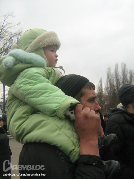 На праздник пошли уже поздно. потому как ждали в гости бабушку Олю (свекровь), поэтому решили пойти в ближайший от дома парк.