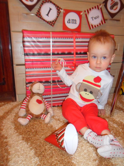 Пока сынулик спал украшала комнату растяжками, помпонами, фотографиями и шариками... готовила костюмчик и подарок....Только ради одного - его восторженных глазок!!!! Я знала, что он всё оценит, каждую мелочь!!! Что он всему будет рад!!!