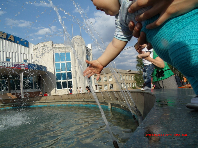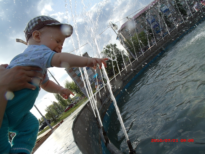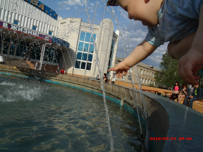 Показала мама мне фонтан! Так понрравилось)) Ручку подставляю и брызги летят)) Весело так))