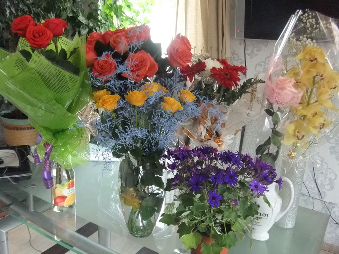 День рождения ВзрослыйКак то с возрастом всё спокойнее становится жить, и даже празднование ДР проходит без какой то суеты. Даже подъём в 6.30 (дети :))) не огорчает, а только радует. Муж с утра подарил беленький Айфончик 5, я не фанатка, но было приятно. Свёкр 8.00 пришел с цветами, чем тоже порадовал. В итоге цветов было много.