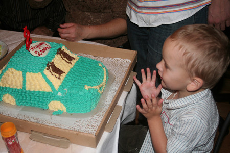 Дом мы украшали шариками, плакатами и т.п. Об их создании я тоже напишу на мамулях, и, возможно, выложу сюда статьи. Торта у нас было 2: первый детский из печенья, второй я заказывала. Свечи задували много раз, Никите понравилось очень!