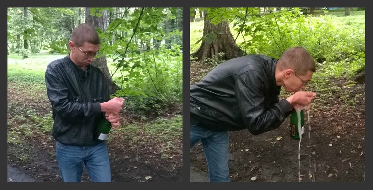 Потом купили нашу традиционную бутылку шампанского и пошли гулять в ЦПКиО. Не подумайте, мы не алкоголики))) Вон, от папы даже шампанское убежало! Но он догнал!))