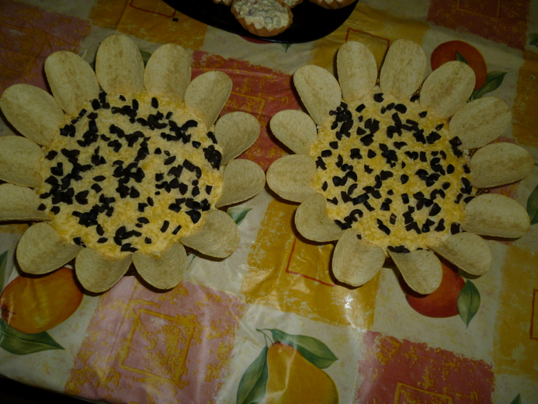 Салат Подсолнух . Салатик делала впервые, очень вкусненько, делала в глубокой тарелке, так рука берет))))