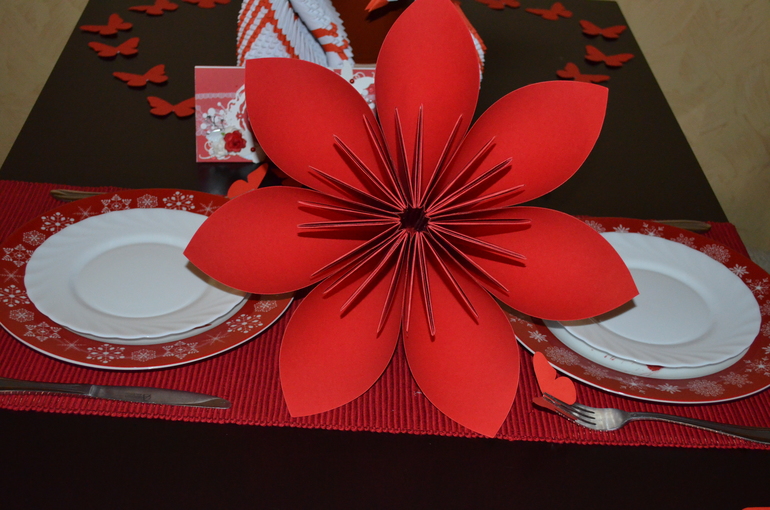 Вторую годовщину нашей свадьбы-Бумажную (или как еще ее называют Хлопковая) мы решили сделать в красно-белых тонах. Точнее в этих тонах у нас получились "аксессуары": бумажный букет, сложенный незатейливым способом, открытка, лебеди из бумаги и бабочки для пожеланий)