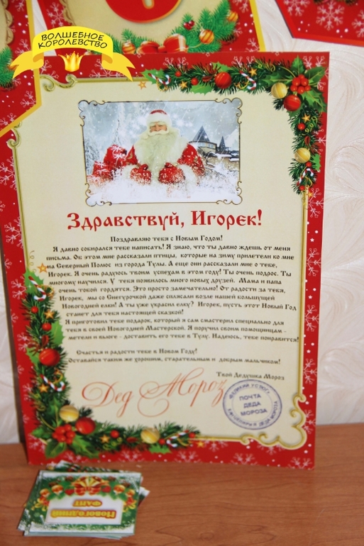 Письмо для сына, от деда мороза, бланк для ответа тоже есть, попробуем...