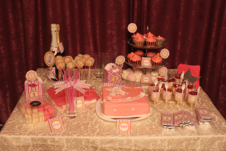 Оформление праздникаДелала украшение и сладкий стол для гостей. Тортик тоже сама делала. НЕ моё только зефир, маршмелоу и макаруны))