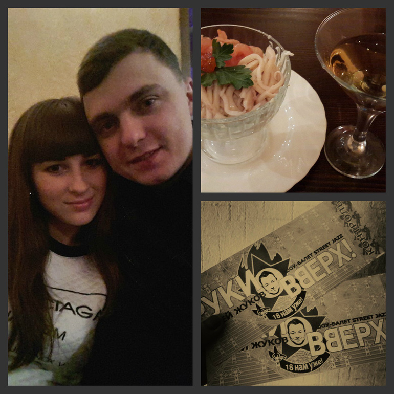 вот и пролетели 3 года совместной жизни,как будто 1 день))))11.11.11-мы скрепили союз узами брака и стали полноценной семьей))))в этом году решили не делать друг другу подарки,а просто купили билеты на концерт руки вверх)))О,как я ждала этот день,не передать словами)Перед концертом сходили с мужем в кафе,а потом пошли наслаждаться хитами Жукова