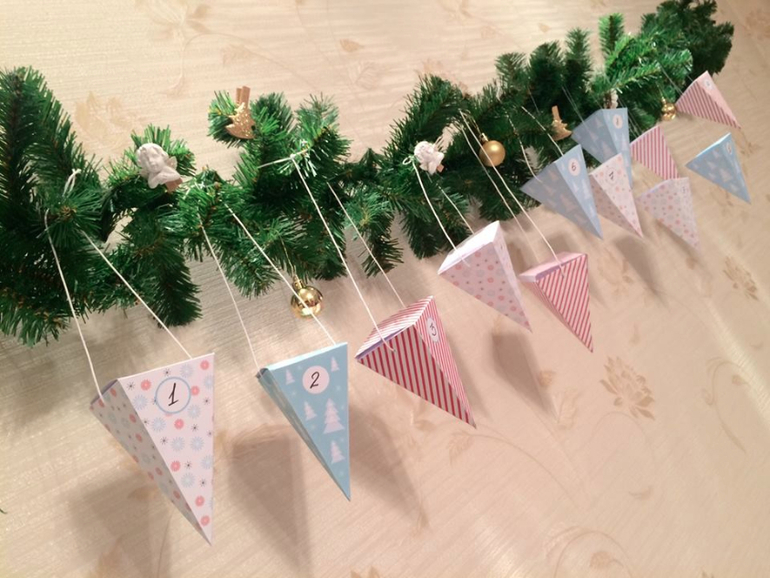 1. Свернутые трубочки с заданиями внутри. Самый удобный и простой в использовании календарик, который можно повесить на дверь или стенку шкафа. Кроме заданий можно вложить подсказки, где искать сюрприз. На 14 дней - 500р, на 31 день - 800р.