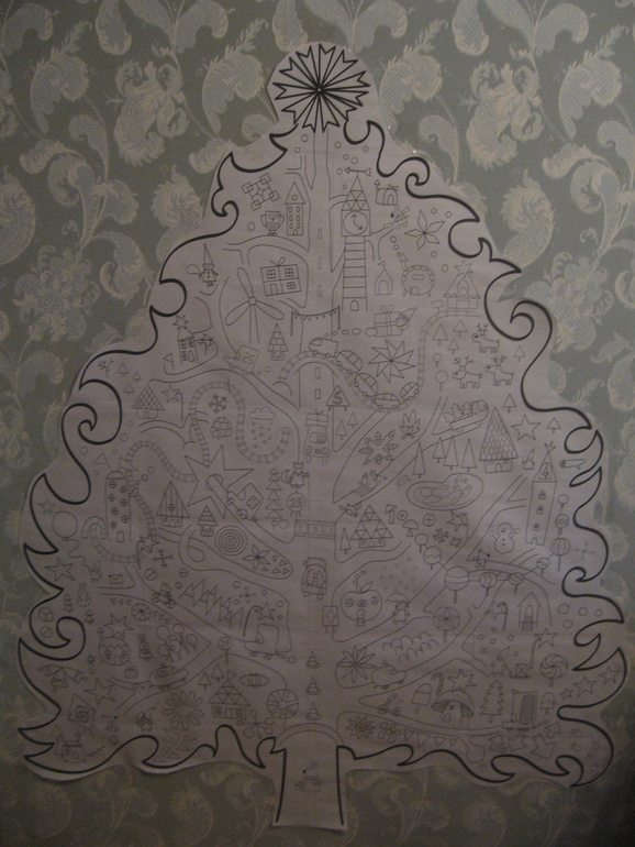 А за дверью ждал первый новогодний сюрприз - большая новогодняя раскраска отсюда