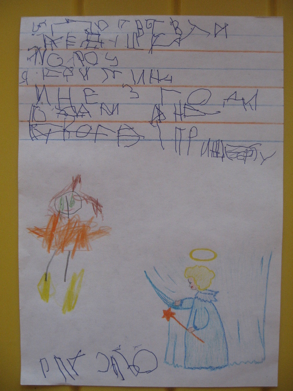 Разумеется, самостоятельно это сделать пока трудно, поэтому я подсказывала, как пишутся те буквы, которые Кристина ещё не умеет писать. Текст письма тоже составили вместе. Вот что получилось: