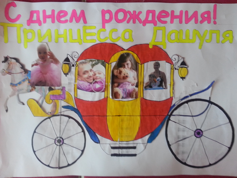 Второй плакат был в виде кареты, в которой была вся наша семья.А вместо кучера посадили Дашину младшую сестренку.![]()