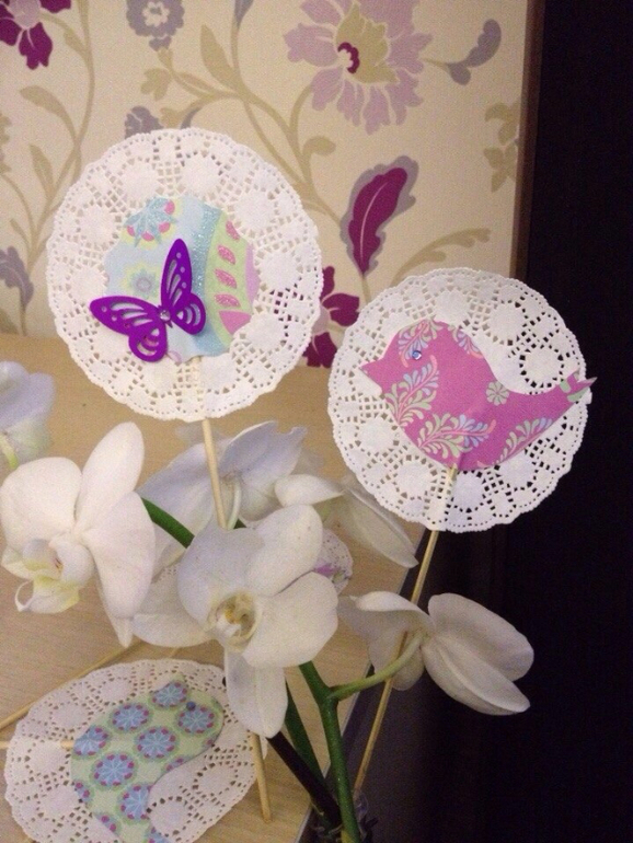 А эти высокие, бабочки и птички разных цветов со стразами, их по 6шт