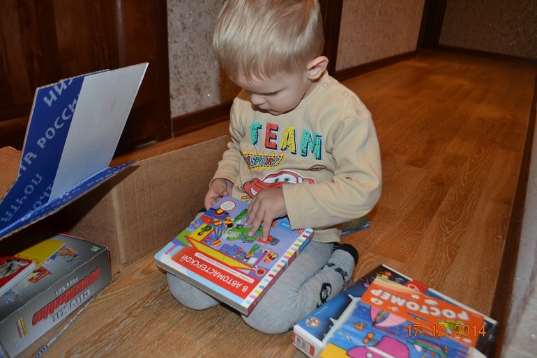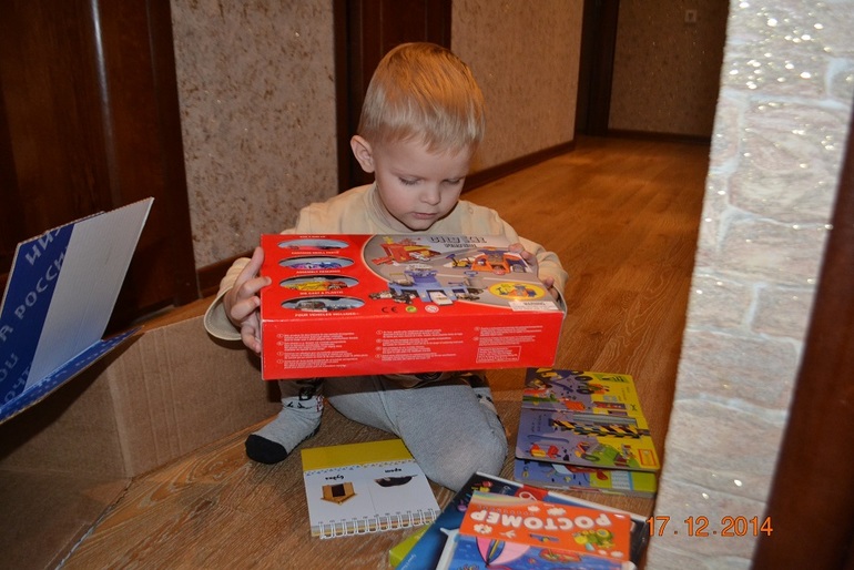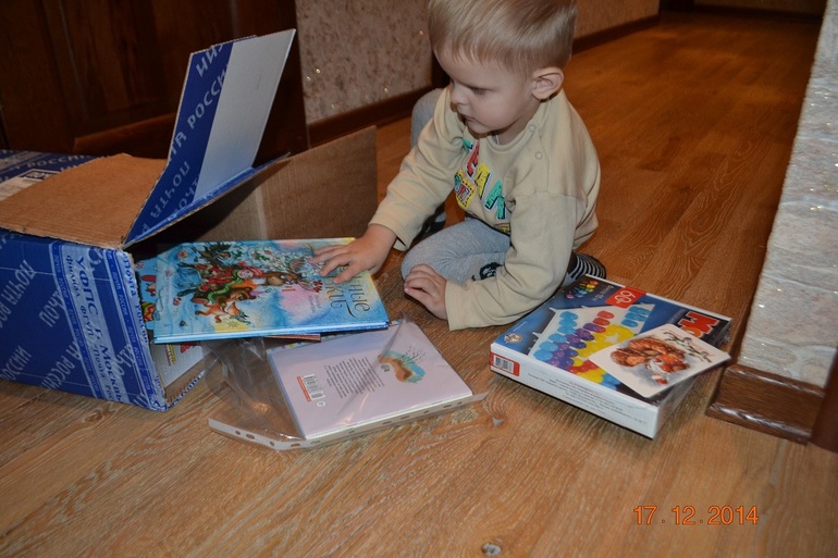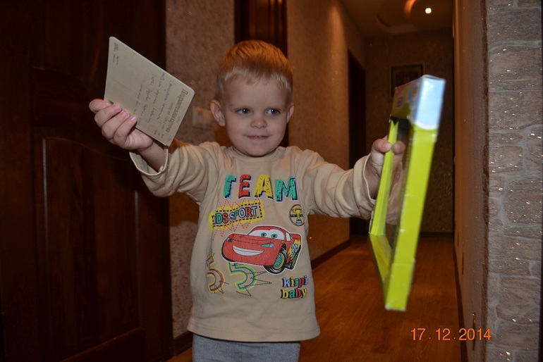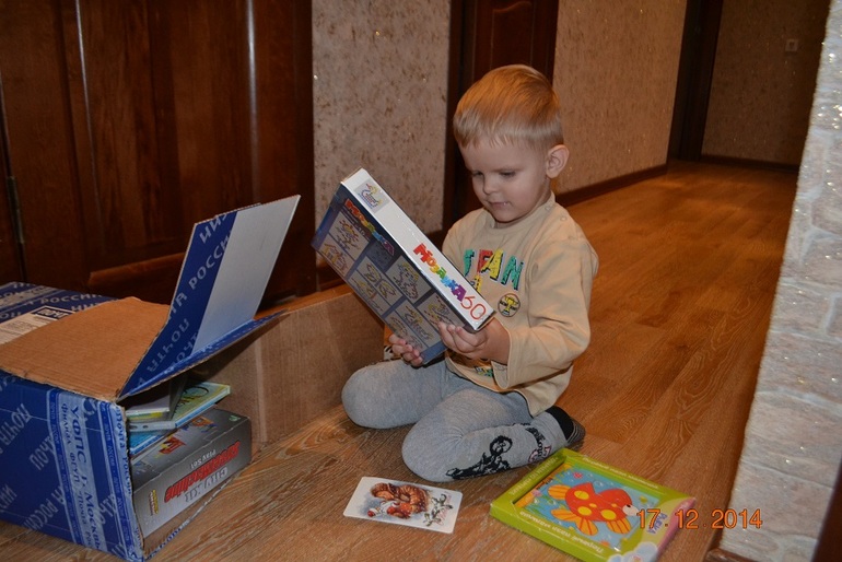 Примерно в обед пришел почтальон и принес заветную коробочку. Сын выбежал в коридор со словами «Дед Мороз наконец-то пришел!!!!» В итоге, сразу стали открывать!!!