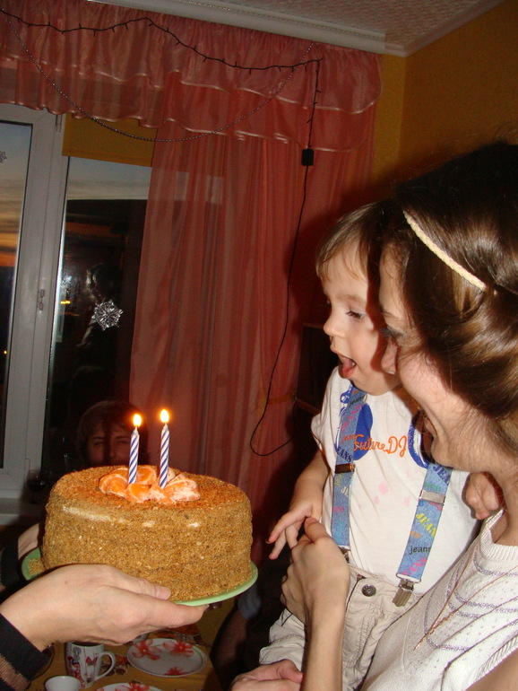 Так как квартирка у нас хорошая, но маленькая, то уже второй год отмечаем в 2,5 этапа))