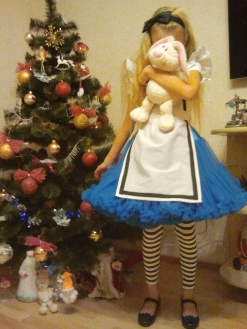 Карнавальные костюмыА у нас на Новый год вот такой именной костюм получился....)))) юбочка американка, лосинки случайно купленные в детском магазине, ободок с бантиком и кролик из собственной коллекции...а фартучек сшили ))) Как вам? Узнали героя?