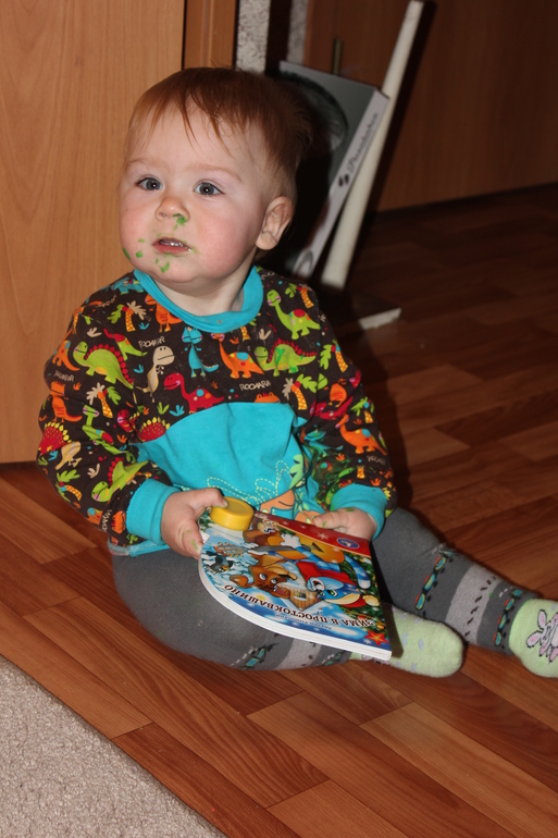 В подарок за работу дед Мороз положил под елочку подарочки. Не только для Славика, но и для Артемки. Славуша получил овечку - она заняла почетное место в нашей деревне, как символ наступающего года и киндер-сюрприз. А для Темочки дед Мороз приготовил книжечку. Славик был очень рад и с огромным удовольствием выполнил первые задания.